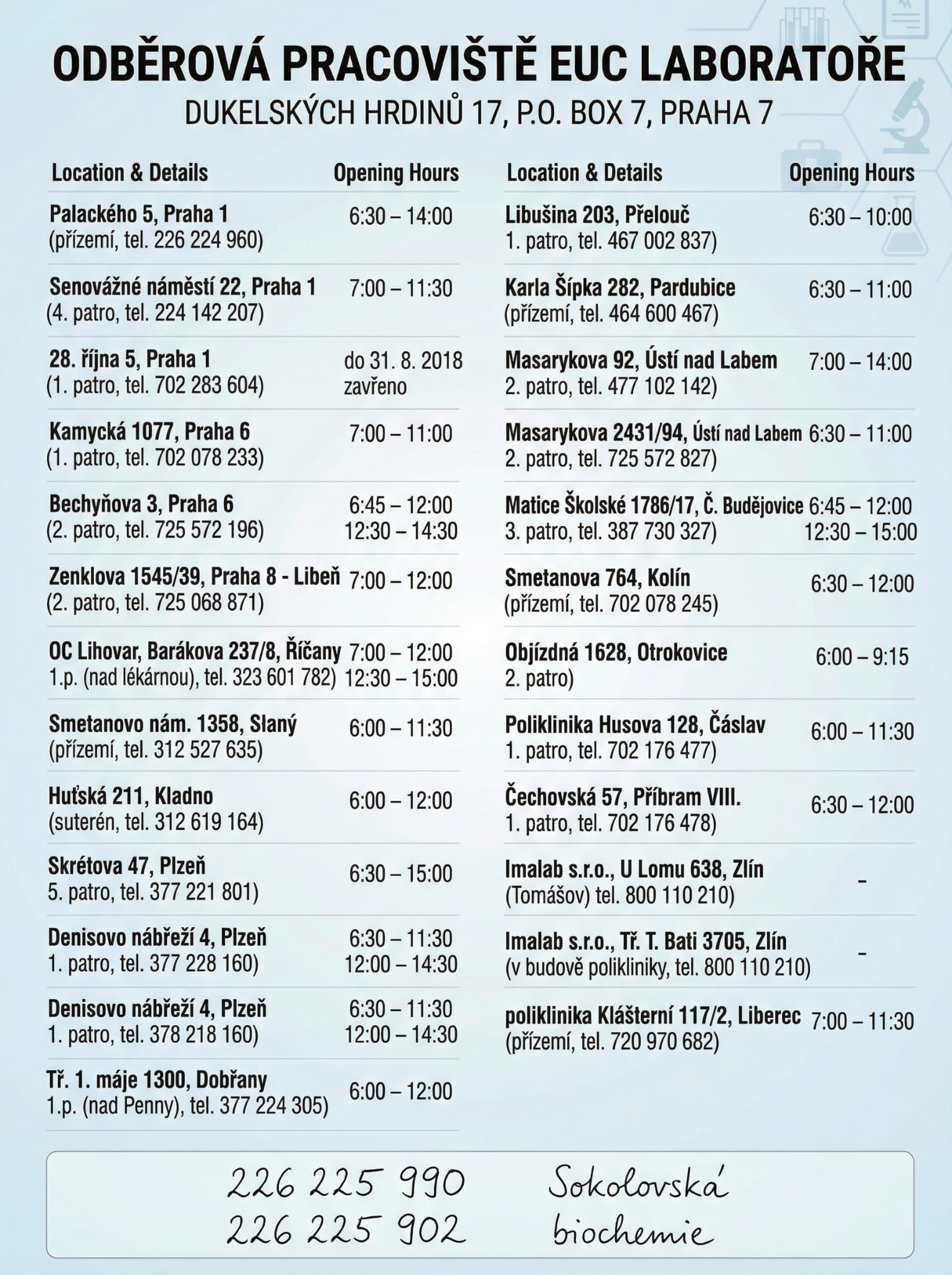 Odběrová pracoviště EUC Laboratoře